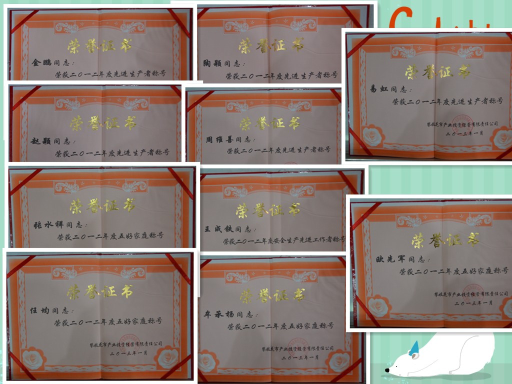 2012年度恒德公司員工光榮榜