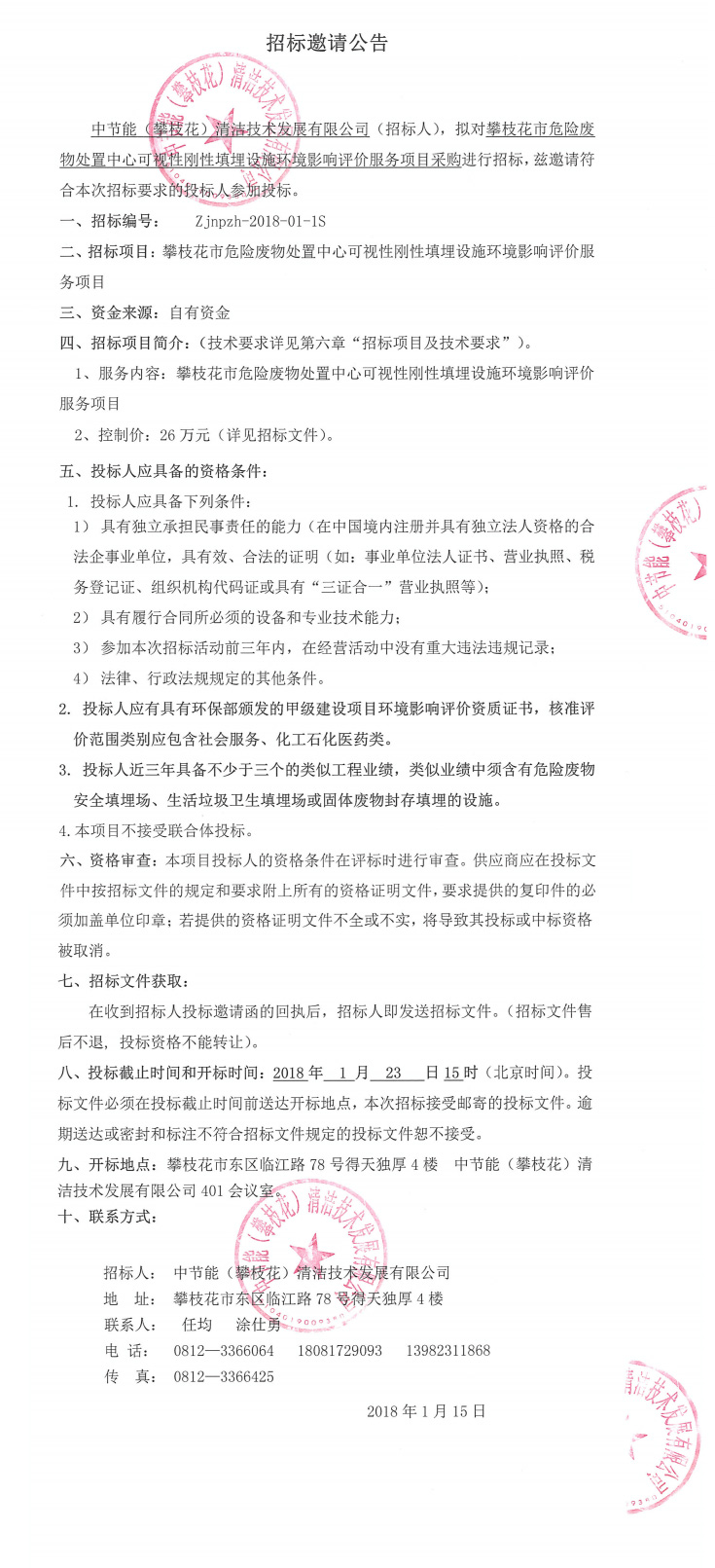 攀枝花市危險(xiǎn)廢物處置中心可視性剛性填埋設(shè)施環(huán)境影響評(píng)價(jià)服務(wù)項(xiàng)目采購(gòu)招標(biāo)公示