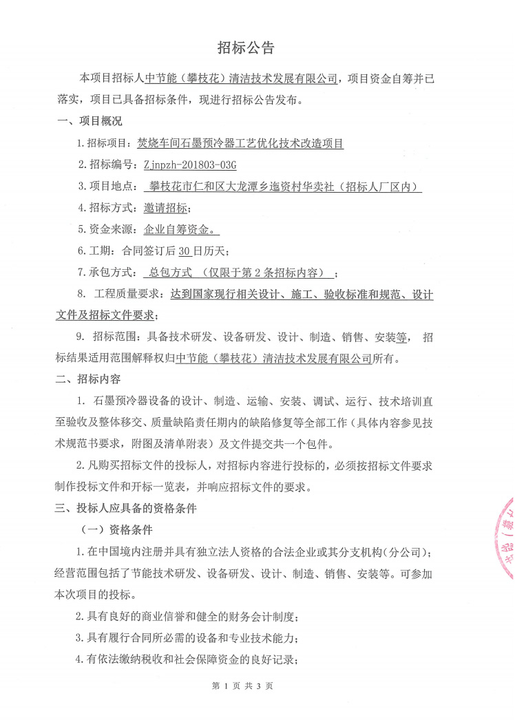 焚燒車間石墨預(yù)冷器工藝優(yōu)化技術(shù)改造項(xiàng)目招標(biāo)公告