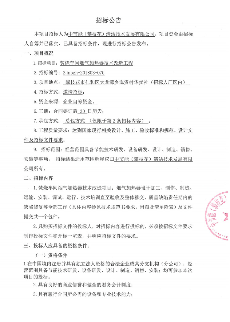 焚燒車間煙氣加熱器技術(shù)改造工程招標(biāo)公告