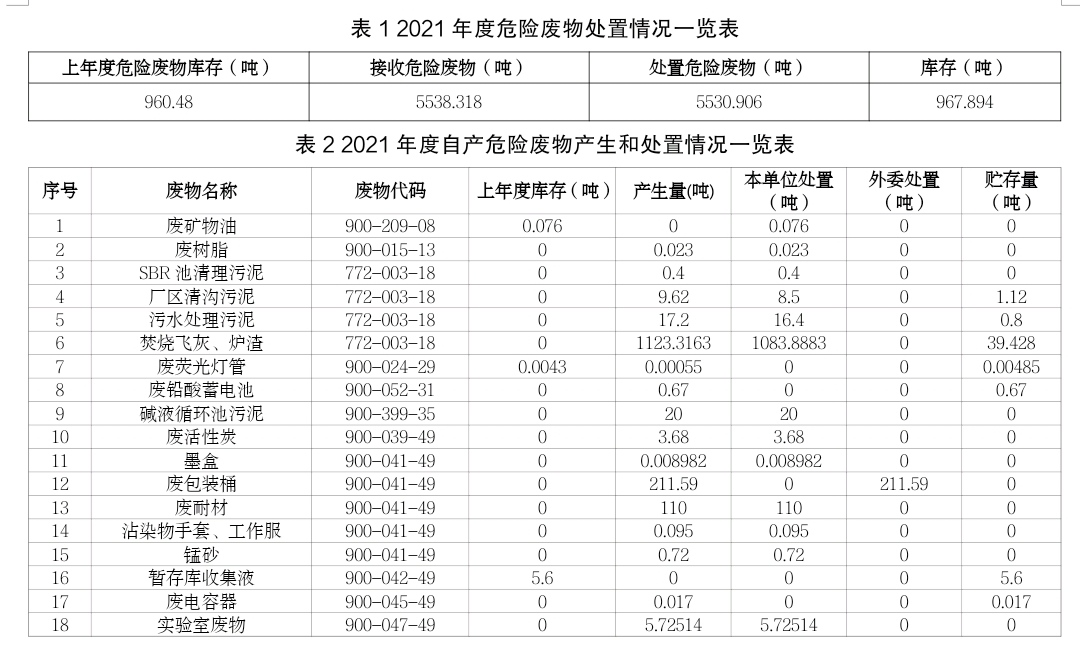 攀枝花市危險(xiǎn)廢物處置中心項(xiàng)目是國務(wù)院批準(zhǔn)的全國31個(gè)綜合危險(xiǎn)廢物處置中心建設(shè)項(xiàng)目之一,建設(shè)于攀枝花市仁和區(qū)大龍?zhí)多l(xiāng)拉鲊村,占地面積134.22畝,總投資約2億元,由中節(jié)能(攀枝花)清潔技術(shù)發(fā)展有限公司(以下簡稱“公司”)投資建設(shè)和運(yùn)營管理。核準(zhǔn)處理原生廢物2.685萬噸/年(含醫(yī)療廢物處置2000噸/年),其中:焚燒處理5000噸/年,物化處理1000噸/年,穩(wěn)定化固化填埋20850噸/年;可對除多氯(溴)聯(lián)苯、新化學(xué)物質(zhì)外的43大類,448項(xiàng)危險(xiǎn)廢物進(jìn)行安全處置,F(xiàn)將我公司2021年收處危險(xiǎn)廢物處置情況和自產(chǎn)危廢處置情況公示如下:
