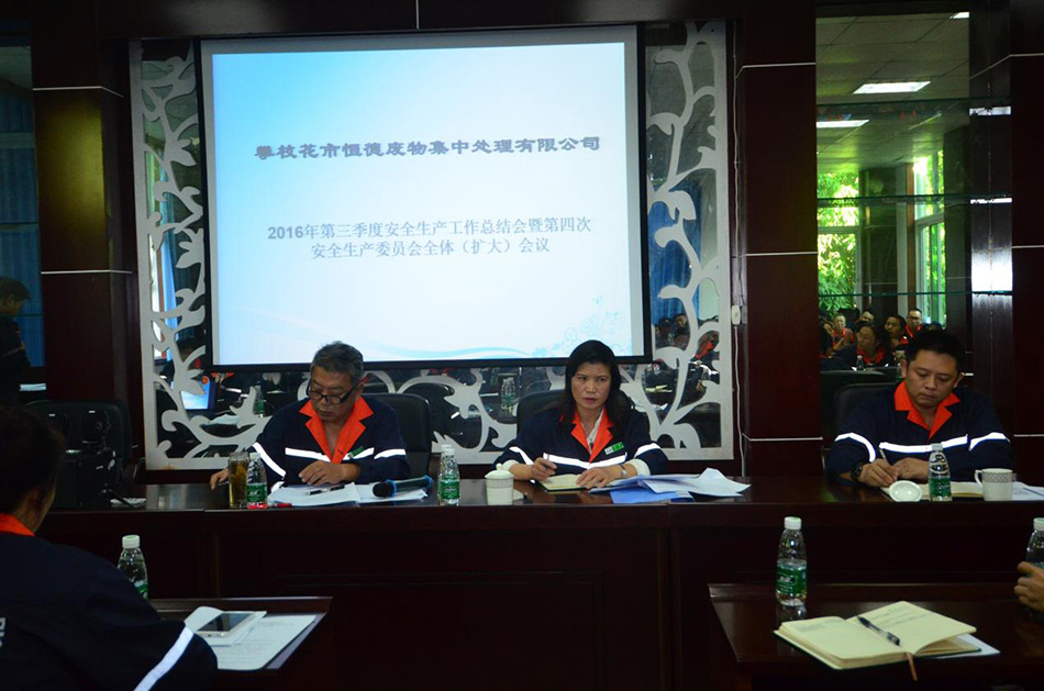 2016年11月10日下午,攀枝花市恒德廢物集中處理有限公司召開了第三季度安全生產(chǎn)工作總結(jié)會暨第四次安委會(擴大)會議,公司安委會成員和全體員工參加會議。 會議學習了中環(huán)集團公司鄭朝輝董事長關(guān)于“中國環(huán)保